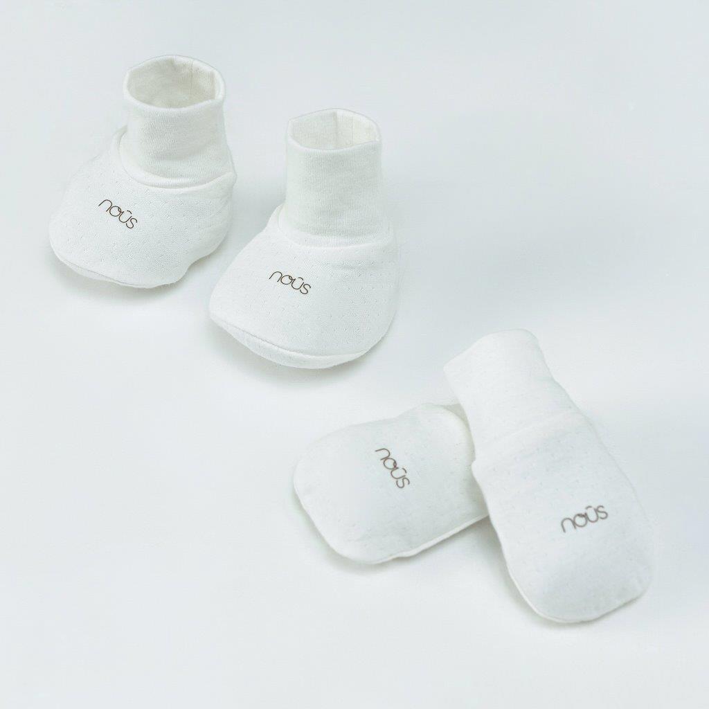 Ngoài trang phục dịu êm, mẹ kết hợp bao tay bao chân Nous tạo nên một set đồ tinh tươm cho bé nhé.