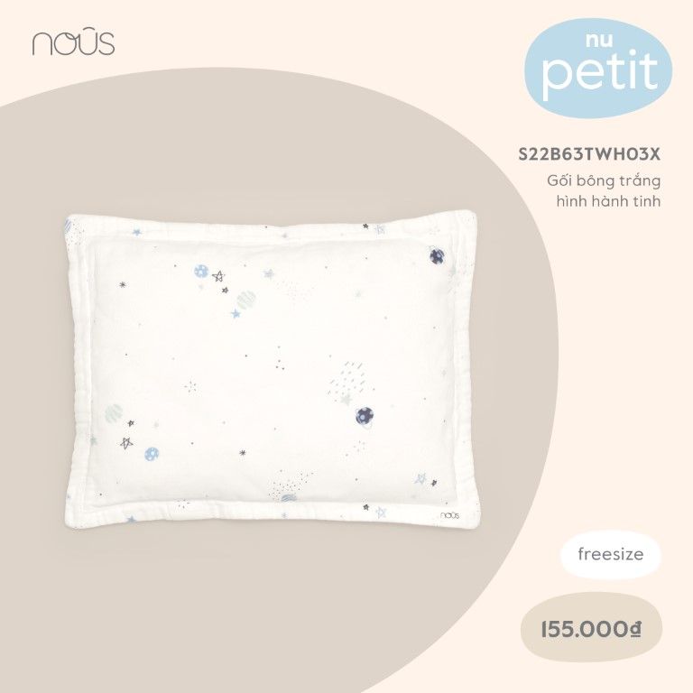 - Độ dày hợp lý: Gối Nous Bông rất mỏng và nhẹ, lớp bông dễ dàng dàn đều, có thể dùng cho bé từ sơ sinh.