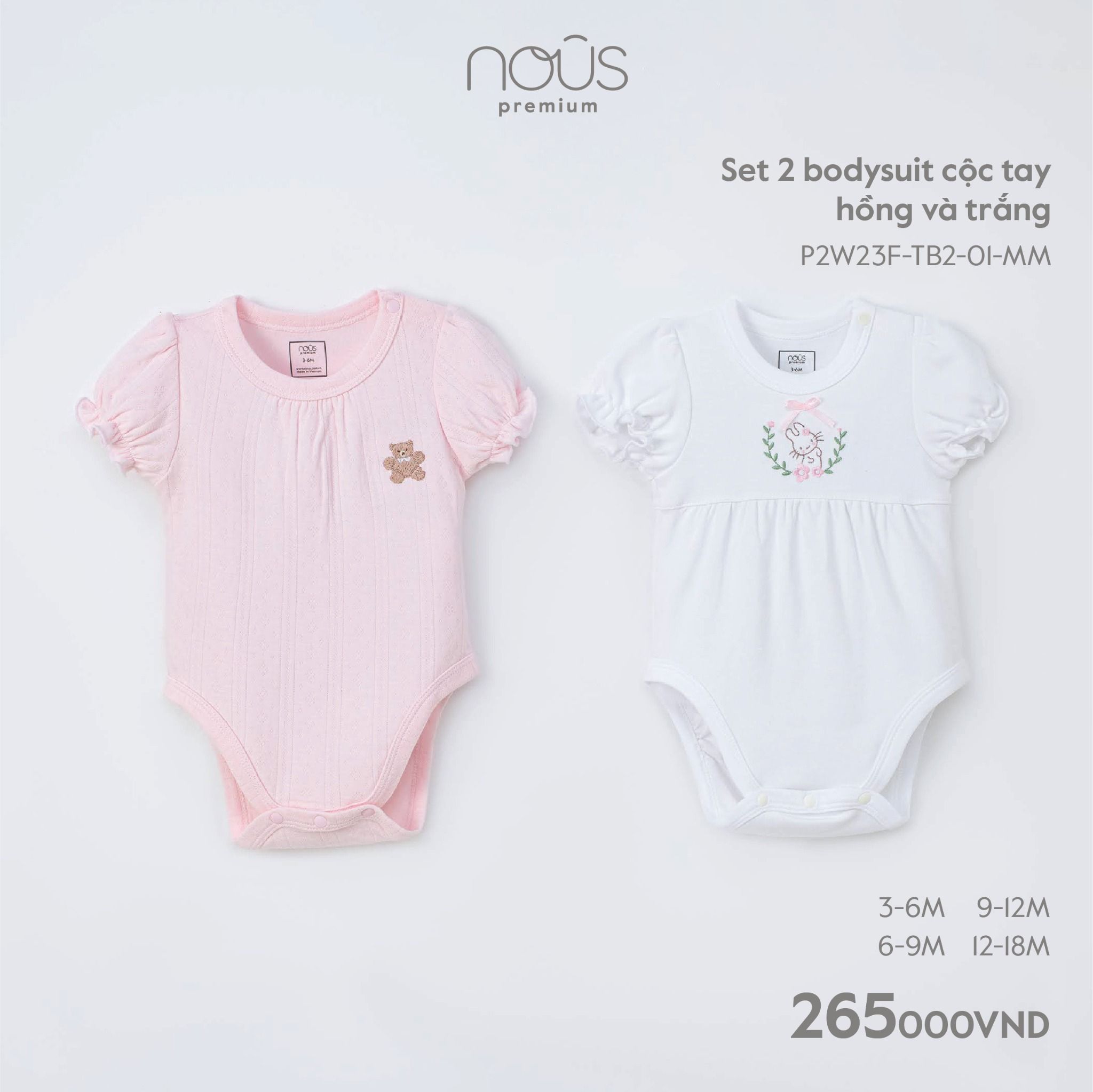 Set 2 bodysuit cộc tay hồng và trắng